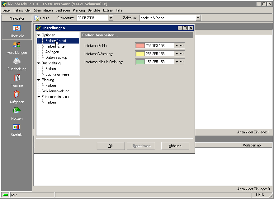 Extras-Einstellungen